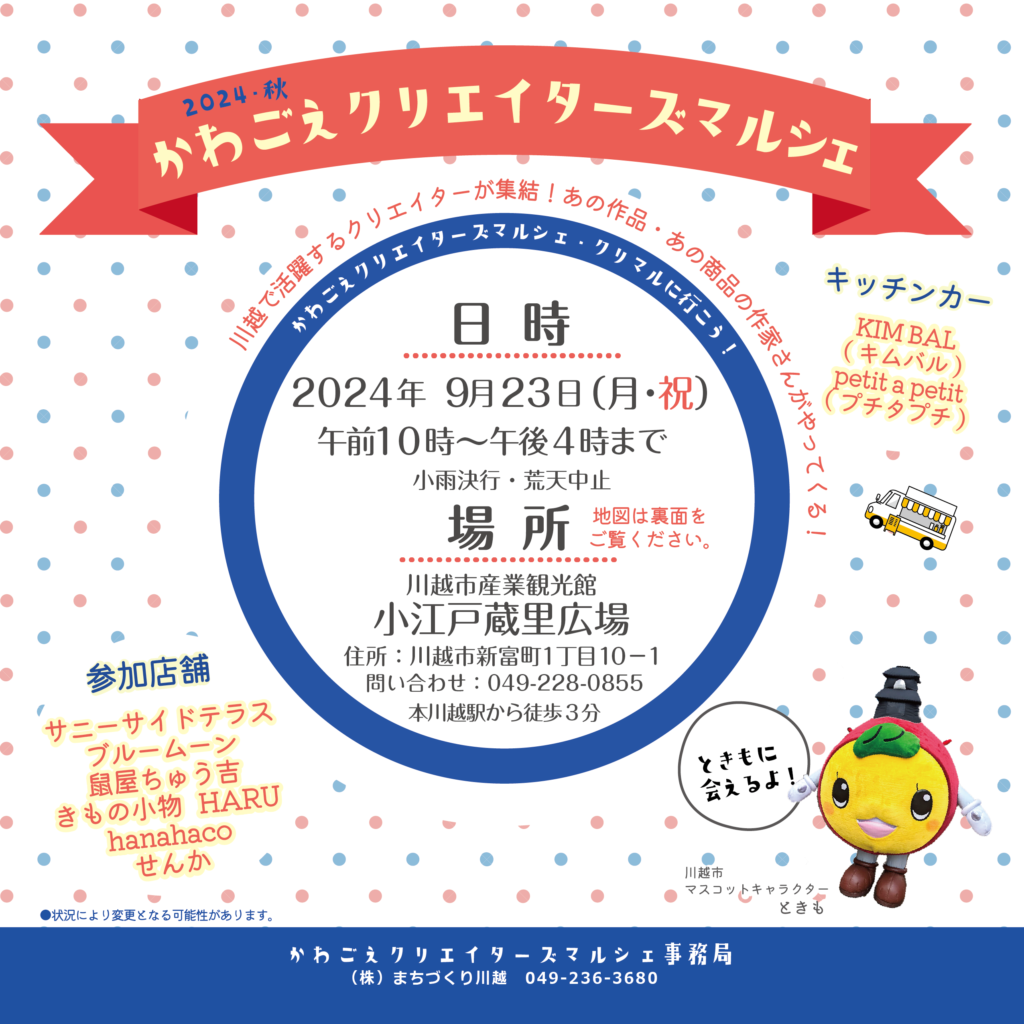 2024年9月23日(月・祝)に『かわごえクリエイターズマルシェ』を開催します!
