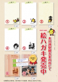 川越駅・本川越駅の観光案内所でときもの可愛らしい絵はがきの取り扱いをしております。