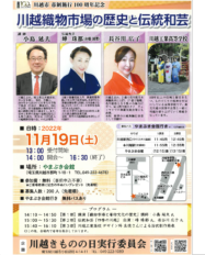 | 名称 | 「川越織物市場の歴史と伝統和芸」 11/19(土)やまぶき会館にて開催 |